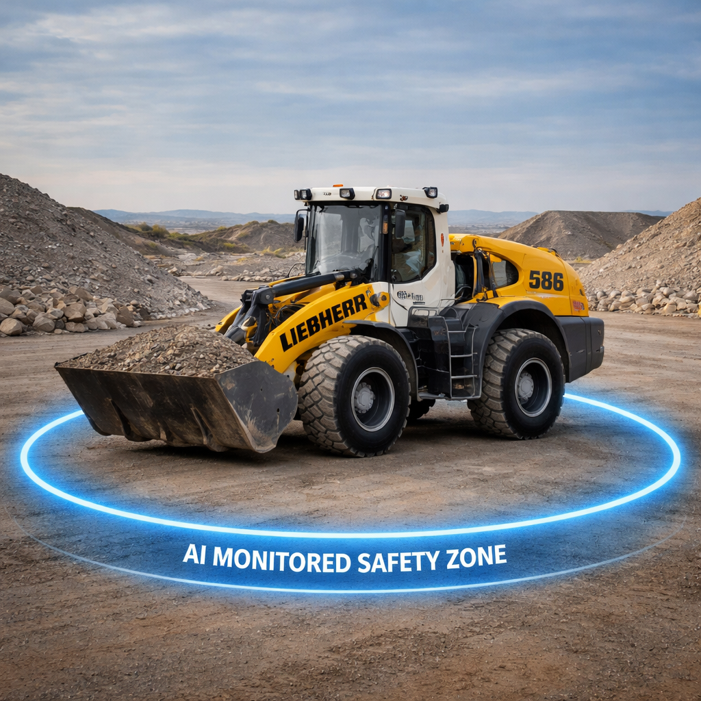 Using advanced AI detection, the system actively identifies people, vehicles and hazards around the machine, providing instant visual and audible alerts to the operator before a risk becomes an incident.